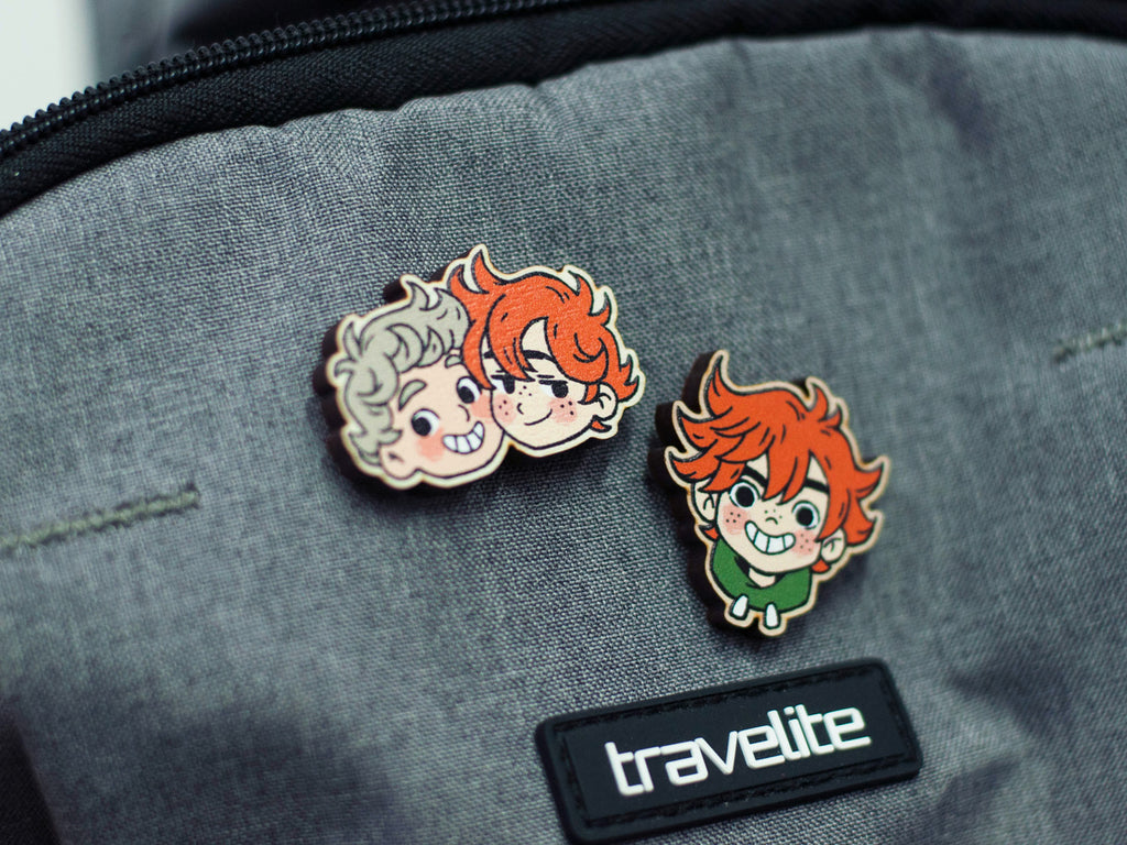 This cute wooden pin of Tim was a stretch goal for the successful Kickstarter campaign to fund the English edition of "Green & Gold": v2.