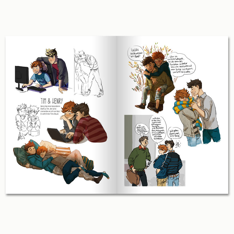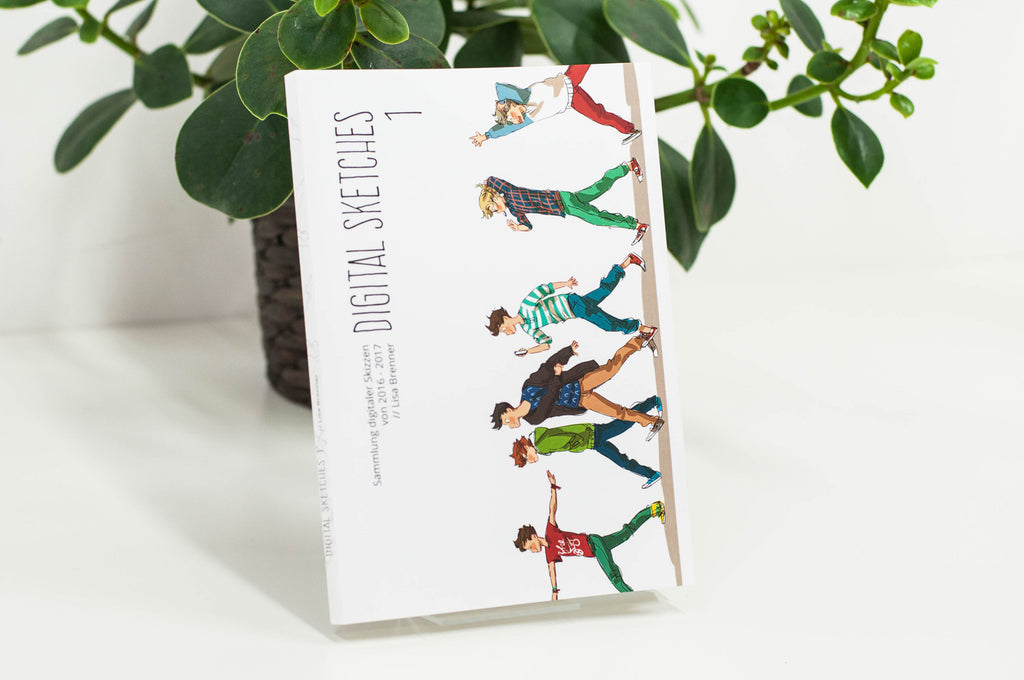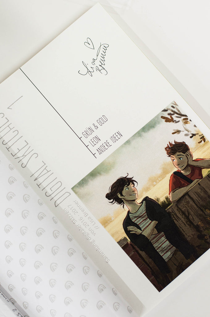 „Digital Sketches 1“ enthält einen Rundumschlag digitaler Zeichnungen, die in 2016 und 2017 entstanden sind. Der größte Teil zeigt die Anfänge von Lisas Comic „Grün & Gold“, sortiert nach Figuren und Beziehungen (Vorsicht: nicht alles ist canon ;-)).